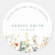 This design features a border of elegant watercolor wildflowers and greenery in shades of green, teal, orange, and yellow. Personalise with your name and business information.