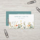 This design features a border of elegant watercolor wildflowers and greenery in shades of green, teal, orange, and yellow. Personalise with your name and business information.