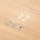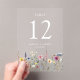 Add a touch of natural beauty to your wedding decor with our Elegant Wildflower Meadow Wedding Table Number Cards. These charming table cards feature a vibrant border of watercolor wildflowers and foliage in shades of pink, yellow, purple, blue, and green along the bottom, set against a frosted or transparent acrylic background. Perfect for spring and summer weddings, the rustic wildflower design brings a fresh, garden-inspired feel to your celebration. Personalise each card with your names, wedding date, and table number. To order, add each table number individually to your cart and check out when you’re ready.