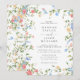 This elegant wildflower wedding invitation features a delicate watercolor floral border with soft pink, blue, and yellow blooms for a romantic garden-inspired look. The classic typography and airy layout beautifully showcase your wedding details, making it perfect for spring weddings, summer ceremonies, rustic venues, garden celebrations, and botanical wedding themes. The back features a coordinating wildflower pattern that adds a soft, artistic touch while tying the entire design together. This floral wedding invitation blends timeless elegance with natural beauty, creating a charming and memorable introduction to your special day.