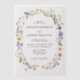 Discover our elegant floral wedding invitations, featuring your wedding details framed by a delicate oval of watercolor wildflowers and lush greenery in vibrant shades of pink, yellow, purple, blue, and green. Designed on a sheer vellum background, these rustic wildflower wedding invitations exude charm and sophistication, making them an ideal choice for spring and summer weddings. Personalise these customisable invitations to reflect your unique style and love story, creating a memorable announcement for your special day.