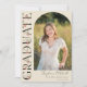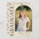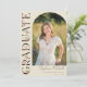 This elegant stylish photo graduation announcement features a vertical photo in arch style and headline in wildflower text with customisable script name and text on a light beige/cream background. Back features wildflower pattern. A great way to showcase your graduate. Click the edit button to personalise this design.