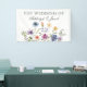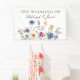 Pretty wildflowers decorate the bottom of this colorful spring wedding banner. Watercolor floral borders are perfect for a garden ceremony outdoors while flowers are in bloom. Elegant script dances above a beautiful orange, purple, yellow, and blue botanical meadow on this custom event decor.