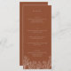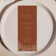 Elegant wildflower terracotta burnt orange 4x9" floral Wedding Table Menu Cards Flat Dinner Menu in modern script calligraphy. You can find a collection of matching items and size 5x7 on our store VelvetPaperCo.