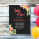 This elegant floral birthday invitation is perfect for a modern summer birthday. The romantic design features beautiful watercolor wildflowers with elegant white calligraphy on a black background.