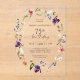 Celebrate a 75th birthday in lovely feminine style with this modern acrylic floral wildflowers birthday party invitation. A beautiful watercolor painted wreath of mixed wildflowers in hues of pink, purple, peach, blue and white with scattered greenery make this invitation pop with style. Personalise the text template with your party info.