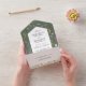 Rustic bohemian wedding all in one invitations featuring delicate watercolor wildflowers, a modern wedding template, and a tear off perforated meal RSVP postcard. No envelopes needed for shipping, simply fold each card into the outlined shape, and then seal and send, its that easy!