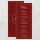 Elegant Wine Red Script Monogram Wedding Menu. Personalize with your starters, entrées, and desserts, and add bride and groom initials in a classic monogram on the back.
