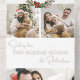 Colorful, elegant and festive watercolor wreath with deep red and green poinsettias, berries and greenery encircles your initial or monogram on a two-photo template and editable text fields. The text fields are available in genuine foil. The panels feature additional text fields, complementary winter botanical embellishments and a bonus tearaway keepsake photo template.