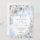 This stunning trendy boho blue floral design featured watercolor hand-painted winter dusty blue hydrangea mixed light blue flowers and cream roses, and white flowers and combined modern trendy calligraphy script font. Тhis irresistible colourful symphony is elegantly set on dusty blue watercolor background. Delicate ivory and powder blue winter flowers elegantly envelop the text in the central part of the design as if a graceful embrace and gives a sophisticated feel to the whole rustic design. Yes, your guests will be really fascinated - send them this really impressive invitation and surely your Party celebration will be remembered for a long time. In this exquisite design we have prepared all the necessary elements for your boho event Party - such as games, welcome posters, table signs and much more, so you can get a complete set of this exceptional minimalist floral bohemian design with a watercolor dusty blue hydrangeas, powder blue and ice blue flowers mixed white roses.
