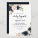 This elegant winter floral calligraphy baby sprinkle invitation is perfect for a modern baby shower. The design features beautiful hand-painted dark blue, blue, navy, pink , blush, gold flowers and green foliage, bunched into elegant bouquets.