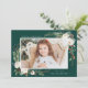 Elegant Winter Floral Frame Green Photo Holiday Card