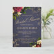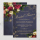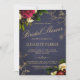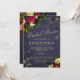 A beautiful traditional bridal shower / bridal brunch invitation featuring winter / Christmas flower bouquets of dark burgundy, vibrant red and ivory cream roses, and peonies, foliage and leaves and a chic gold calligraphy script over a dark midnight navy blue chalkboard background. ++++++++++++ The invite is suitable also for summer night or autumn fall classy elegant themed weddings.
