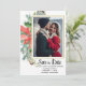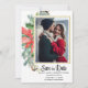 Hello. Welcome to my Save the Date cards. This elegant Save the Date card frames your favourite photo in a winter botanical spray on the left side. A red poinsettia is in the centre of the pine spray. The photo itself is framed in gold. The year is written in the upper right corner. Save the Date, your name, wedding location and date are written below. Message me (I'm Nelda) by using clicking on the message button on this page, if you need help finding any coordinating items. Thank you for visiting my Zazzle store, wishing you a wonderful wedding!