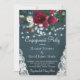 Rustic elegant winter wngagement party stylish invitation template on a dark navy blue chalkboard featuring a beautiful burgundy wine and white peony roses bouquet with hunter green foliage, strings of white twinkle lights, lace corners, and a chic typography script. ++++++++++++++ Easy to personalise with your details! +++++++++++++++ The invitation is suitable for elegant winter rustic country / farmhouse / cottage / Christmas engagement or other couple parties.