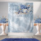 Elegant, classy and sophisticated blue winter florals with a beautiful blue bird sitting on the tea saucer teacup Birthday Party design.