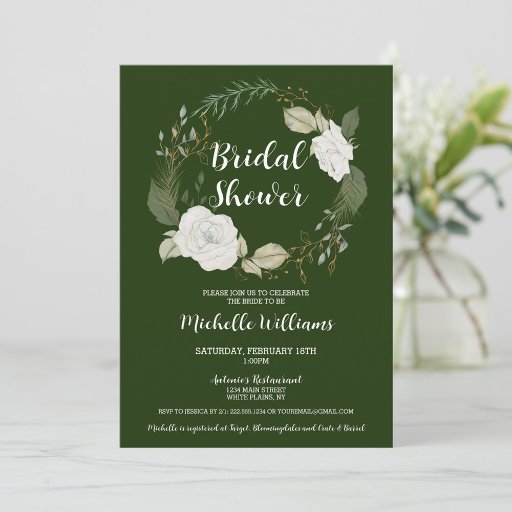 Elegant Winter Floral Wreath Bridal Shower Invitation