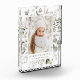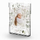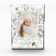 Elegant holiday photo block featuring your vertical photo framed in white with a background of watercolor snowberries, holly, eucalyptus leaves, and lush sage green foliage. Personalise the botanical Christmas photo block with a custom greeting and your family name in sage green lettering.