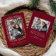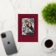 Send holiday cheer with our elegant Christmas photo card, featuring a vertical photo framed in burgundy and accented by a delicate gold foil foliage border. Customise the greeting—currently shown as "Merry Christmas"—and add your names for a personal touch. The back of the foil Christmas card offers an additional photo with space for a heartfelt message. This simple, modern design with a botanical theme perfectly balances sophistication and warmth, making it an ideal choice for the season.