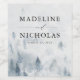 Elegant, winter wedding wine label featuring a forest of misty blue & gray watercolor pine trees. Personalize the pine tree wine labels by adding your names & wedding date. Designed to coordinate with our Elegant Winter Forest wedding collection.