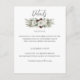 This elegant winter wedding pine cone details enclosure card is perfect for an elegant holiday or winter wedding. The design features beautiful watercolor white florals with pine cones, and forest greenery in sage green, white and brown. This is a perfect colour scheme for a winter wedding. Make this details card your own by including any details you want to share such a directions, accommodations or registry info. For further customisation, use the advanced design tool to modify this template.