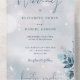 All in one winter wedding invitation featuring botanical floral leaves and elegant typography on a snowflake background. The invitation includes a perforated RSVP card that can be individually addressed or left blank for you to handwrite your guest's address details. Designed by Thisisnotme©