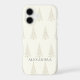 A stylish cream phone case with Christmas trees pattern and custom name. This elegant phone case features Scandinavian style minimalism and a seasonal winter white color. The pine trees pattern gives a festive look, making this ideal for the holiday season for yourself or as a stylish customized gift. Click 'Personalize' to add your name to the design.