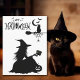Fly into a frightfully fun Halloween night! Send family and friends an elegant , modern Halloween greeting. This design captures the eerie magic of the season. Our design features a pretty witch sitting down and reading her tarot cards, while her black cat sits quietly on her broomstick hanging from the ceiling under the moon lit sky. The black bats flutter in the background. Card is titled “Happy Halloween”, perfect for sharing spooky season cheers. Crafted with a playful, erie charm, it’s ideal for friends, family, or anyone who loves a good Halloween toast.Flip the card over for a customisable option to add the sender's name, address, and a personal message for a unique, bone chilling keepsake they’ll treasure. It’s the perfect blend of playful and spine-chilling! Let the frights begin!