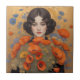 Elegant Woman Holding Bouquet of Poppy Flowers Tile