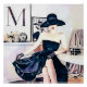 fashion illustration of elegant woman in black strapless dress
