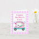This one-of-a-kind item depicts a decorated golf cart for a golfing Mother's Day! This brightly coloured golf cart transports gifts, cake, and sparkling Champagne. This a fun Mother's day card to give to someone who lives and breathes golf!