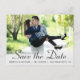 Elegant custom photo "Save the Date" postcard with white wood grain overlay.