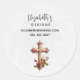 Elegant Wooden Cross with Pink Flowers Business Classic Round Sticker