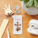 Elegant Wooden Cross with Pink Flowers Key Ring