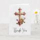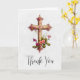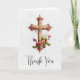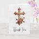 Elegant Wooden Cross with Pink Flowers Thank You Card