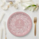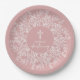 Elegant Wreath and Cross Pink Girl Christening Paper Plate