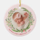 Elegant Wreath First Christmas Photo Pink Ceramic Tree Decoration