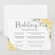 Elegant Yellow Baby Shower Predictions Card is a sweet and interactive keepsake designed with soft yellow tones that bring warmth, joy, and charm to your baby shower celebration. This beautifully styled card invites guests to share their fun predictions about the baby’s arrival—such as birth date, weight, eye color, and more—creating a meaningful memory for the parents-to-be. Perfect for spring, garden, neutral, or modern baby shower themes, it coordinates seamlessly with matching yellow shower stationery for a cohesive and polished event.