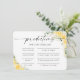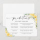Elegant Yellow Baby Shower Predictions Card is a sweet and interactive keepsake designed with soft yellow tones that bring warmth, joy, and charm to your baby shower celebration. This beautifully styled card invites guests to share their fun predictions about the baby’s arrival—such as birth date, weight, eye color, and more—creating a meaningful memory for the parents-to-be. Perfect for spring, garden, neutral, or modern baby shower themes, it coordinates seamlessly with matching yellow shower stationery for a cohesive and polished event.