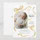 Celebrate a sacred and meaningful day with our Elegant Golden Yellow Bow Baptism Invitation. This design features our own hand-painted watercolor bow and flowing ribbon, gracefully wrapping around an arch-shaped photo frame for a soft, timeless look. The baptism details are beautifully arranged around the delicate ribbon elements, creating an elegant and refined layout that feels both modern and classic. The warm golden yellow tones add a joyful, radiant touch—perfect for honoring this special milestone. Ideal for baptisms, christenings, religious celebrations, baby blessings, and church ceremonies. This invitation is fully customizable with your child’s photo and event details to create a keepsake-worthy announcement for family and friends. Hand-painted watercolor bow and layout by ©Moodthology Papery.