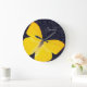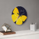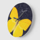 Elegant Yellow Butterfly Black Damask Add Name Large Clock