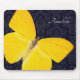 Yellow butterfly on a black damask pattern background mouse pad. Personalise this elegant mouse pad with your name.
