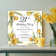 Elegant yellow daffodils floral design "21st Birthday Party" design featuring a floral square frame of daffodils surrounding a white and green frame on a distressed yellow and white background.