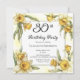 Elegant yellow daffodils floral design "30th Birthday Party" design featuring a floral square frame of daffodils surrounding a white and green frame on a distressed yellow and white background.