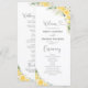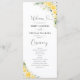 This Elegant Yellow Floral Wedding Program template adds a bright and sophisticated touch to your ceremony, beautifully designed with soft yellow florals and delicate greenery for a fresh and romantic aesthetic. The warm yellow tones paired with subtle botanical accents create a welcoming and elegant look, guiding your guests through each moment of your special day. Featuring a clean and well-organised layout, this fully editable template allows you to easily customise the order of events, names, and details to match your wedding theme. Ideal for print use, it enhances your ceremony with both style and clarity.
