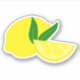 This elegant lemon sticker can help serve as a reminder to try and make the best of things when life gives you lemons. The design features a whole yellow lemon, a lemon wedge, and green leaves.