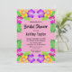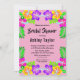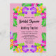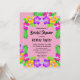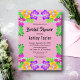 This elegant tropical bridal shower invitation is perfect for a modern summer bridal shower. The simple design features bloom yellow, purple, and pink flowers with elegant black typography on a blush pink background.