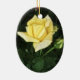 An oval ornament for the Christmas holiday or to hang all year round of a stylised yellow rose flower.