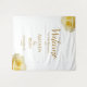 Elegant Yellow Roses Floral Wedding Welcome Backdrop. This modern and elegant floral wedding welcome backdrop features beautiful yellow roses in two corners and fancy calligraphy on a white background.