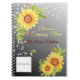 An elegant yellow sunflower notebook comprising of a grey gradient background decorated with a pretty floral watercolor yellow sunflower, sting of lights and a bee . Personalise by adding your business logo, business name and other text such as what notepad is for . A lovely stylish notebook for your office staff and employees.